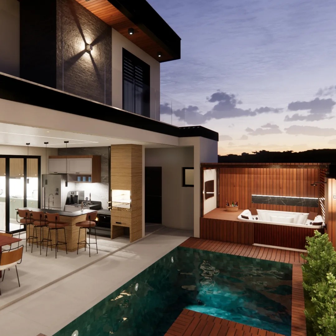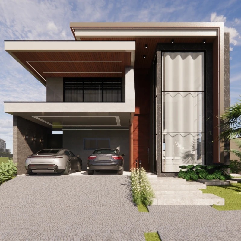 Uma casa com escolhas de acabamentos modernos e atemporais, para trazer um ar imponente.